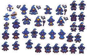 Wizard character iterations in Aseprite